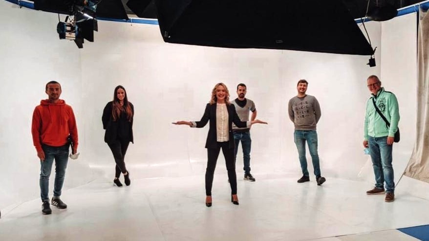 Foto en el plató con Emanuel Munteanu, Alan Pardines y Ruediger Hagedorn.
